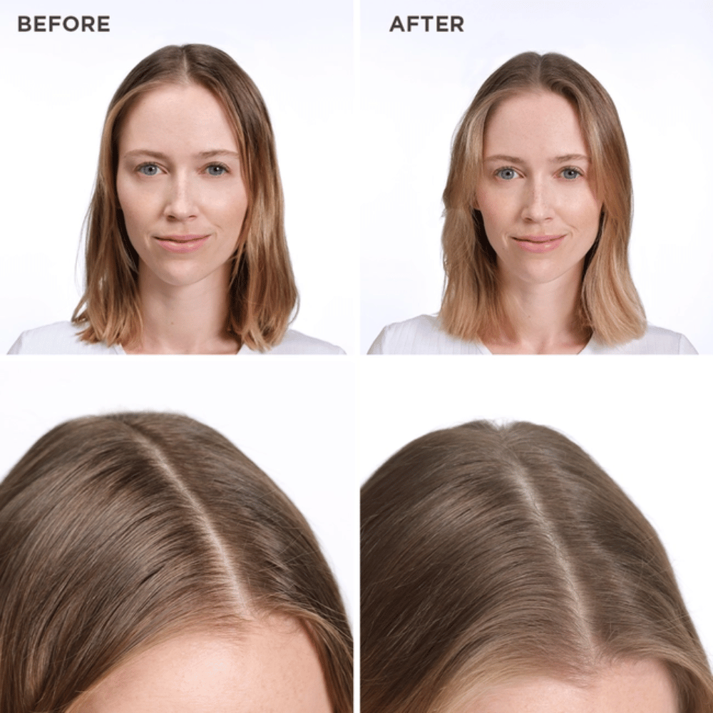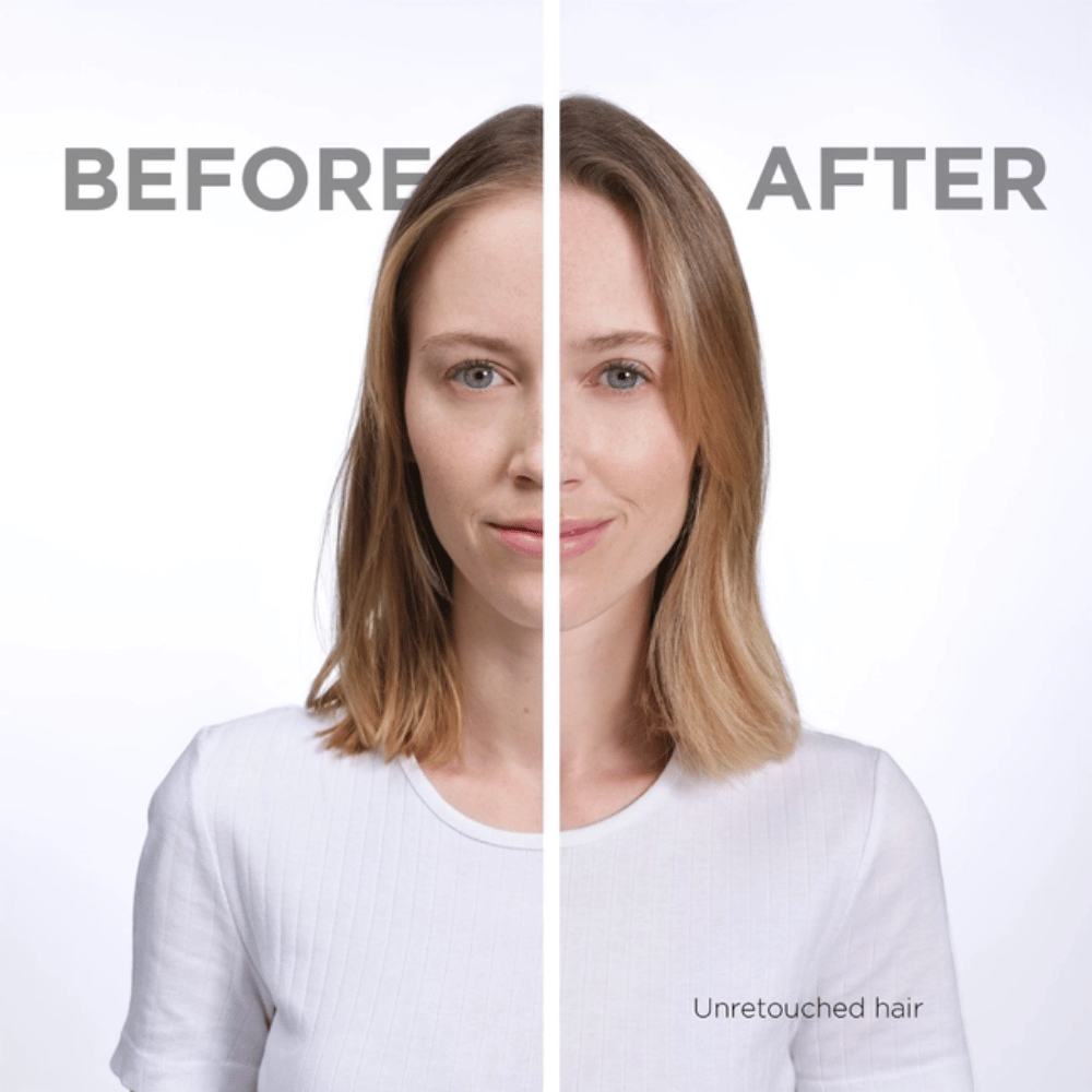 Hold 20 cm from dry hair and spray onto roots.